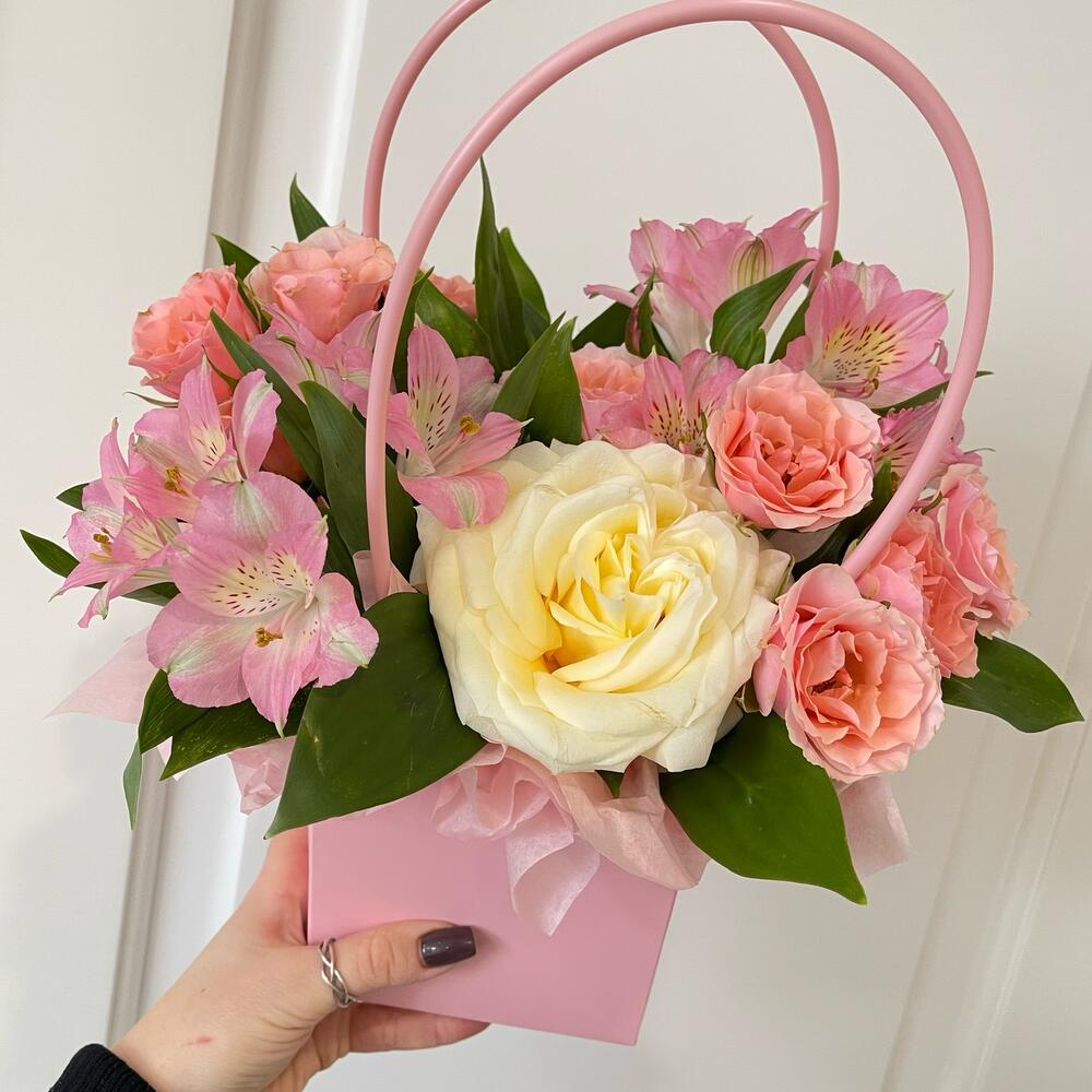 ПИОНОВИДНАЯ РОЗА,КУСТОВАЯ РОЗА,АЛЬСТРОМЕРИЯ В СУМОЧКЕ в Болотном